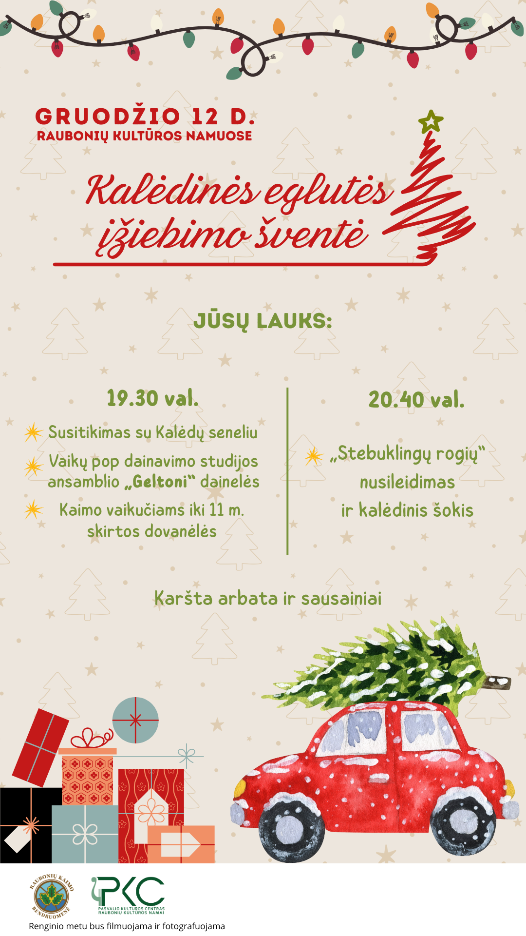 Kalėdinės eglutės įžiebimo šventė Date 2025 12 12 Time 19:30 - 21:00 Location Rauboniai House of Culture Draugystės g. 2, Raubonių k., Pasvalio r. Category Community Culture Share this event
