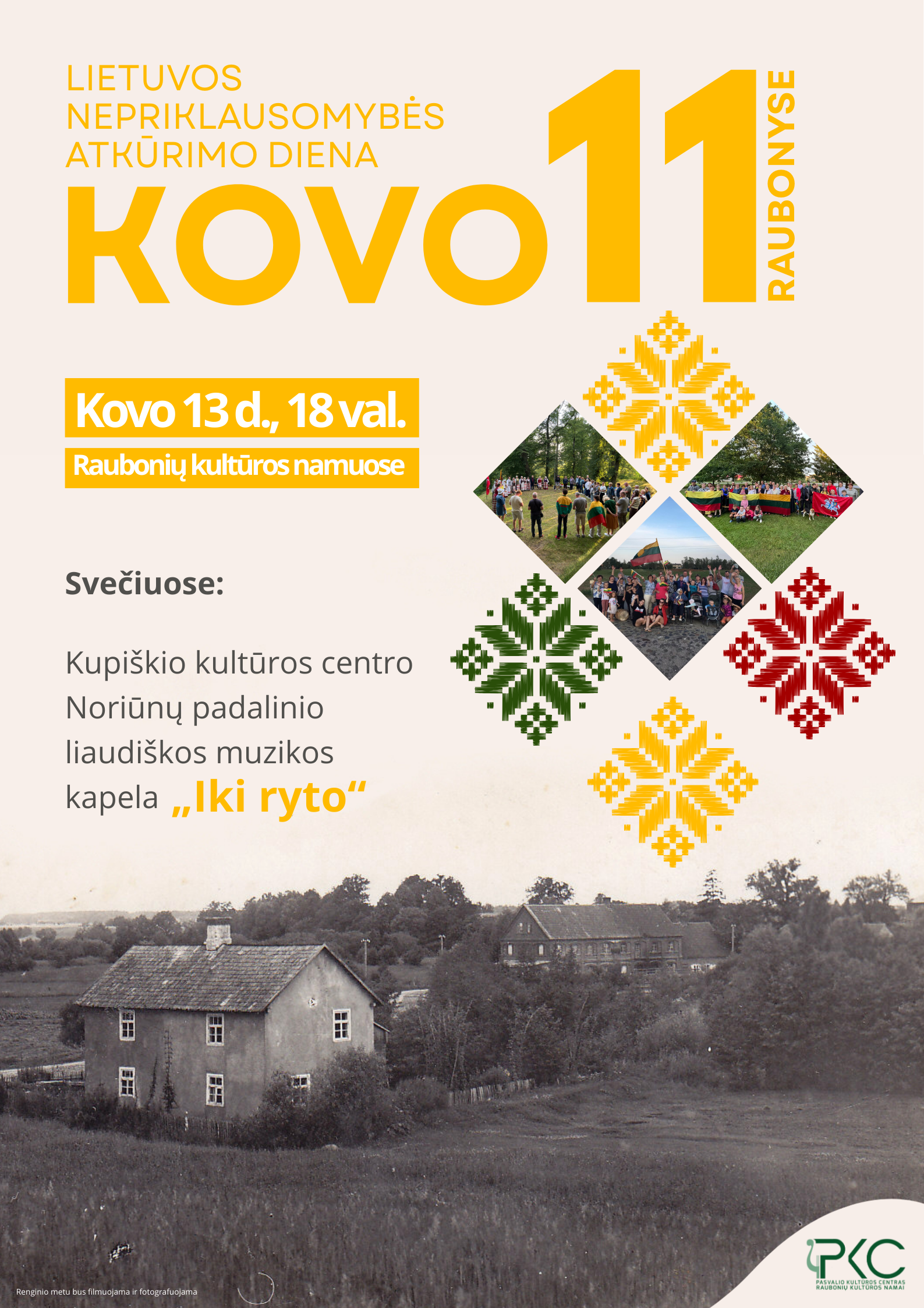 Kovo 11-osios minėjimas Raubonyse Date 2026 03 13 Time 18:00 - 19:30 Location Rauboniai House of Culture Draugystės g. 2, Raubonių k., Pasvalio r. Category Culture Share this event